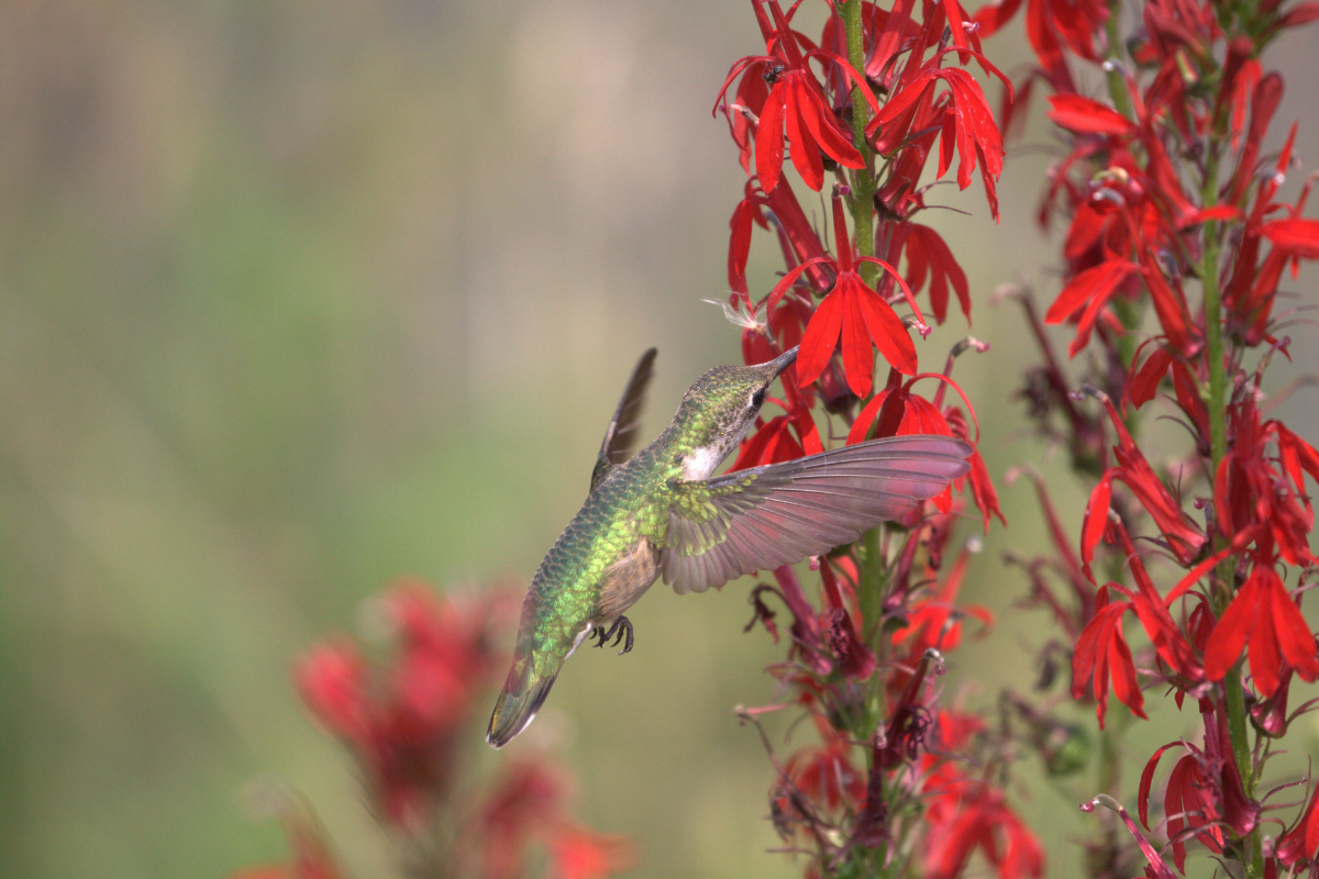 Ruby-throated Hummingbird on a Cardinal Flower. Photo: Grant Davis